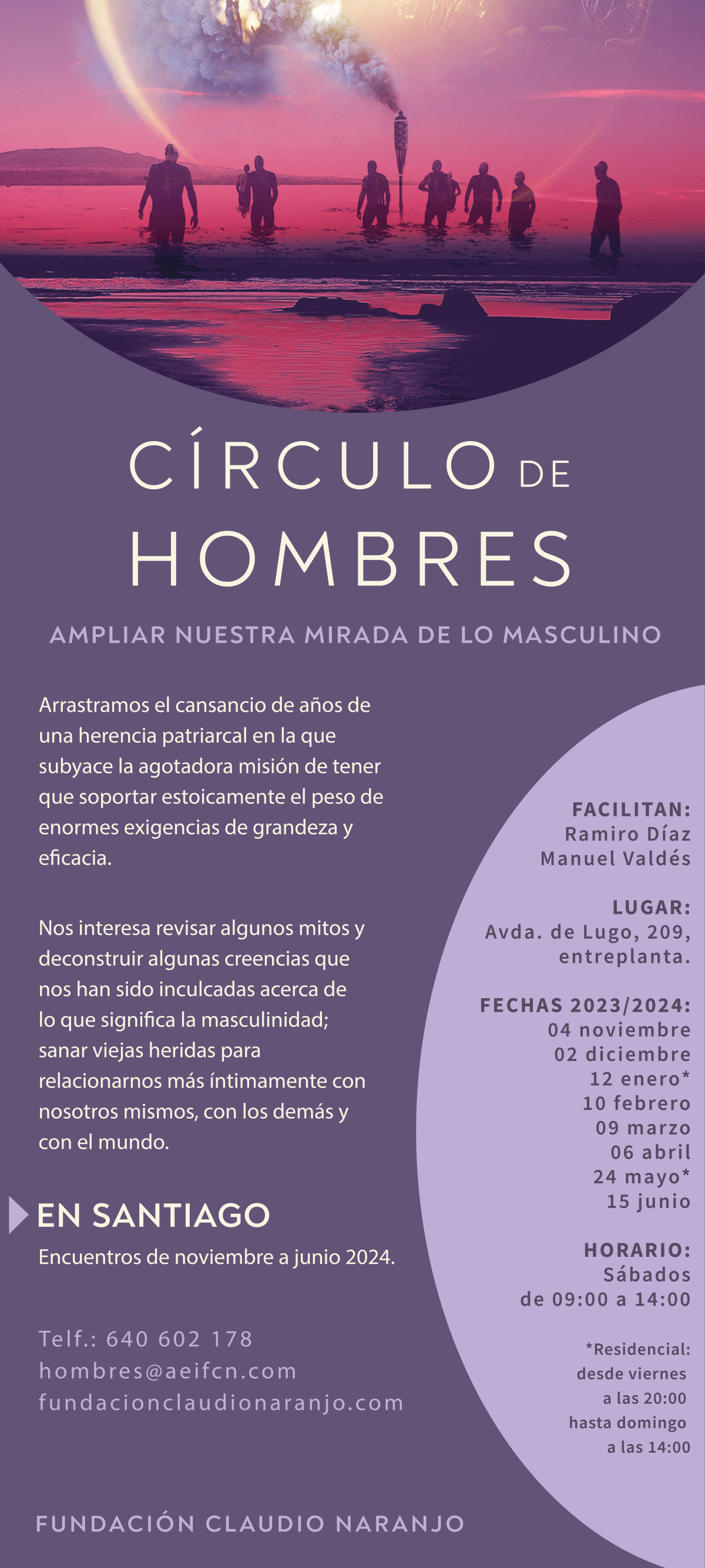 Desde esta ausencia me interesé en los grupos de hombres que si bien llevaban unos años funcionando, había costado mucho arrancarlos precisamente por esta resistencia masculina al compartir. En este momento existen varios grupos de hombres entendidos desde distintas perspectivas, lo cual me alegra y me anima a formar parte de esta iniciativa. Desempeño la labor de facilitador en dos grupos, uno en Santiago de Compostela y otro en Madrid.